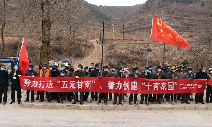2022年4月,根據(jù)王旗鎮(zhèn)安排,駐村幫扶工作隊(duì)員會(huì)同其他鎮(zhèn)村干部組織群眾數(shù)十人,在洮河西岸磨溝段開展了以“黨旗高擎、黨徽常耀、綠色出行、保護(hù)環(huán)境”為主題的義務(wù)植樹活動(dòng),共栽下4000余棵松樹苗,掀起了植樹造林的熱潮。