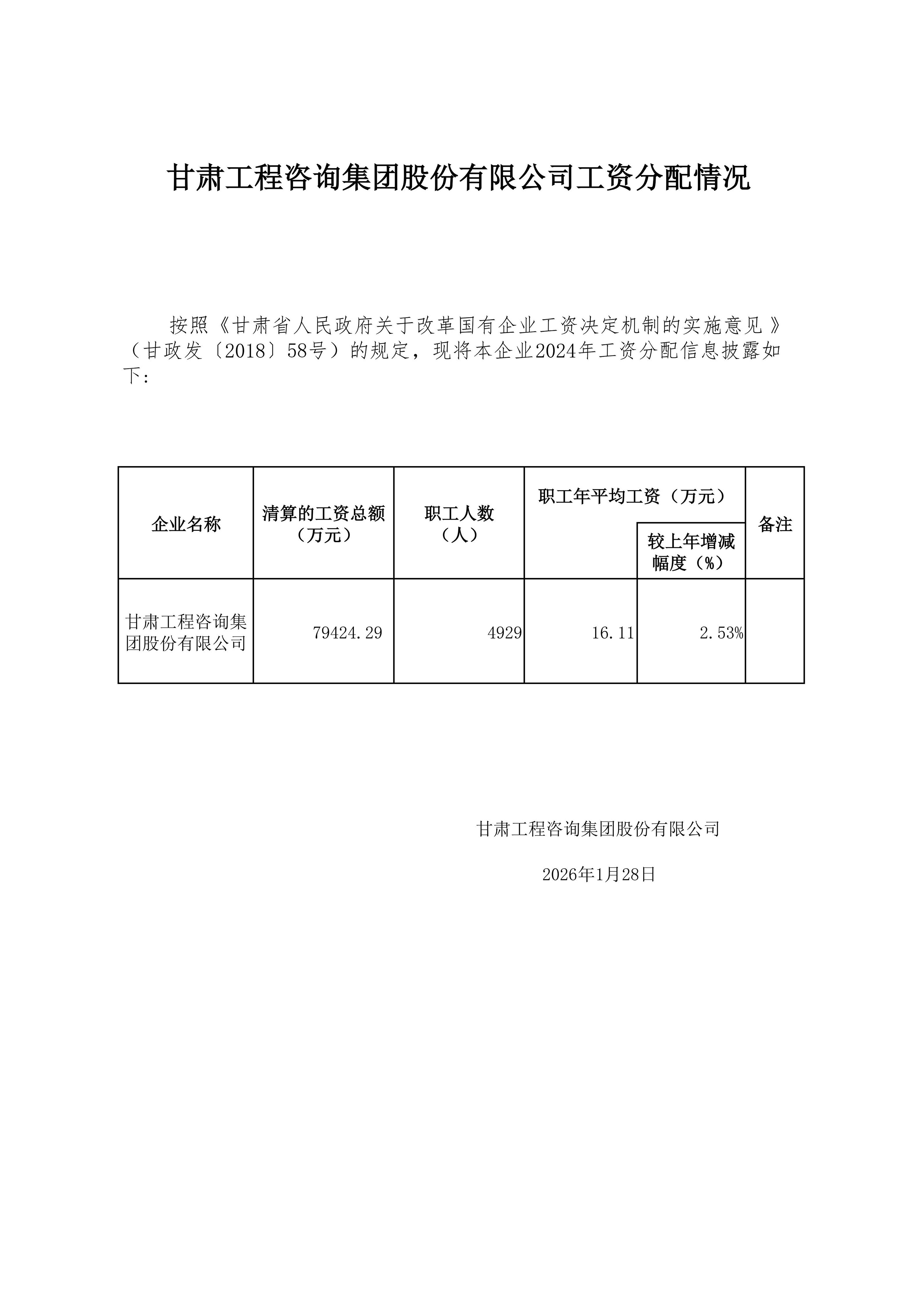甘肅工程咨詢集團(tuán)股份有限公司董事、監(jiān)事、高級(jí)管理人員2024年度薪酬情況及甘肅工程咨詢集團(tuán)股份有限公司工資分配情況